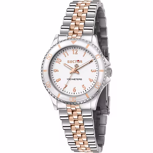 Orologio Sector 230 R3253161533, acciaio 32 mm, quarzo, vetro minerale e bracciale bicolore silver e rosè. Impermeabile 10 ATM.