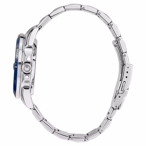 La cassa in acciaio da 41 mm, con finitura lucida e satinata, offre una presenza decisa ma confortevole al polso. La colorazione blu della cassa dona personalità e modernità, distinguendo il modello con discrezione. Il vetro minerale protegge il quadrante nell’uso quotidiano, mentre il bracciale in acciaio garantisce solidità, comfort e continuità estetica.