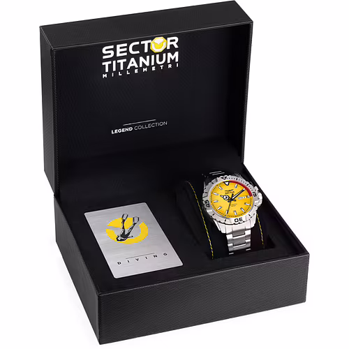 Orologio Sector Legend R3223135002, automatico in titanio 43 mm, vetro zaffiro e quadrante giallo. Diver professionale impermeabile 100 ATM.