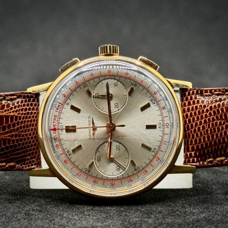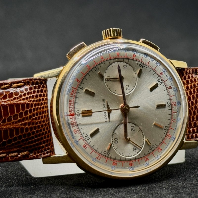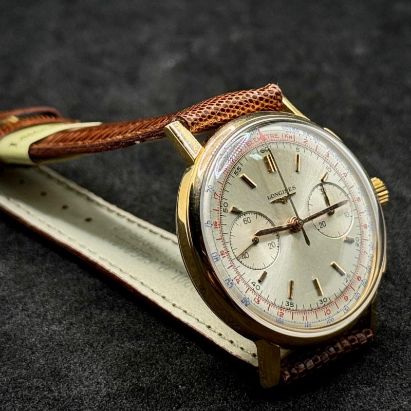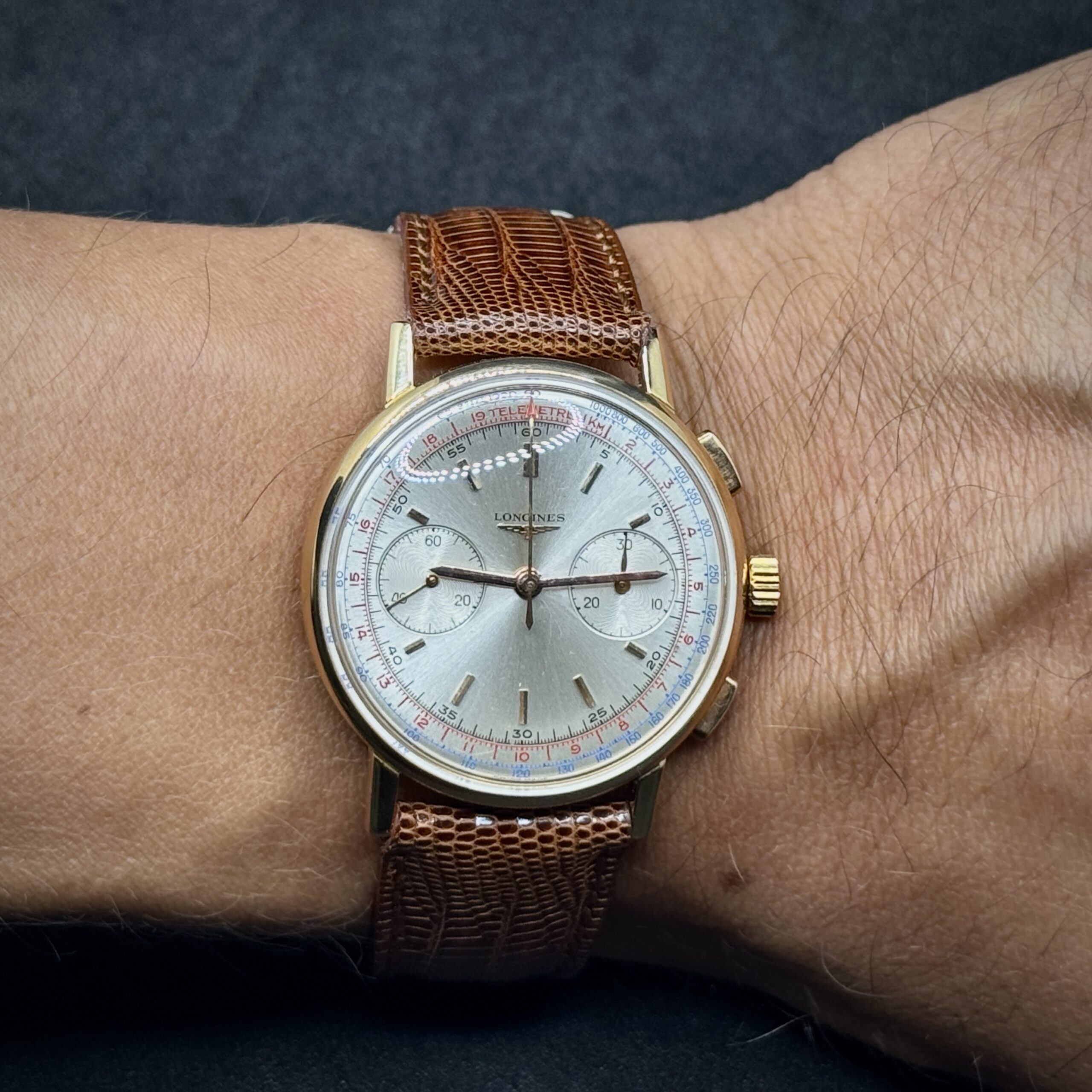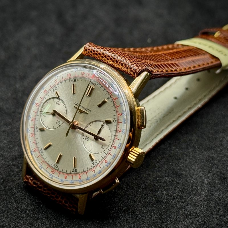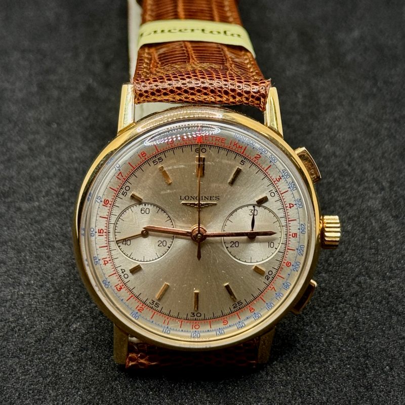 Orologio Longines Vintage Ref. 7414 anni ’60/’70 in oro rosa con movimento a carica manuale 30CH. Totalmente restaurato, cinturino intercambiabile e garanzia 24 mesi. Un cronografo elegante e dal valore collezionistico unico.