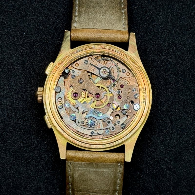 Questo modello rappresenta un vero pezzo da collezione: un orologio vintage raro, elegante e di alto pregio grazie alla cassa in oro 18Kt e al movimento cronografico storico. Restaurato con cura, è ideale per chi desidera indossare non solo un orologio, ma un frammento di storia dell’orologeria.