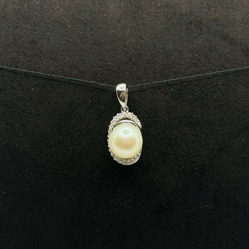 Pendente in oro bianco 18 kt con perla acqua dolce e swarovski