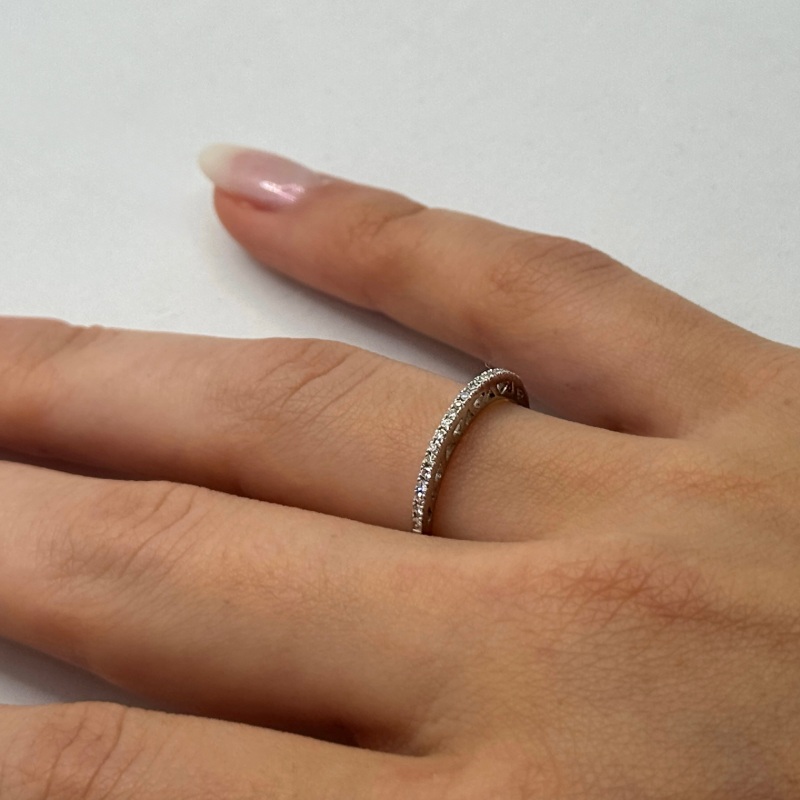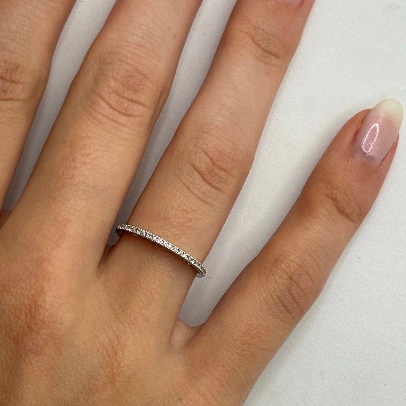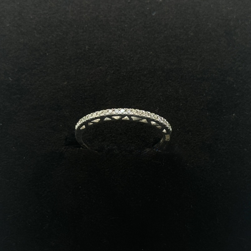 La Veretta Bibigì AND0002B è un anello classico e raffinato, realizzato in oro bianco 18 kt (peso 1,55 g) e impreziosito da diamanti taglio brillante per un totale di 0,11 ct. La montatura essenziale mette in risalto ogni pietra, creando un delicato filo di luce che avvolge il dito con eleganza e discrezione.