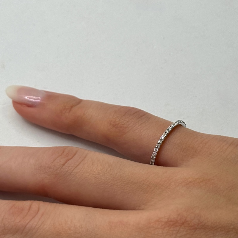 La particolarità della collezione sta nella montatura brevettata BiBiGì, che rende i diamanti impercettibili sulla pelle. Il risultato è una luce continua che avvolge il dito con estrema leggerezza, regalando un effetto raffinato ed esclusivo. La misura è 11, modificabile su richiesta, per adattarsi perfettamente a chi desidera indossare un anello elegante, confortevole e versatile.